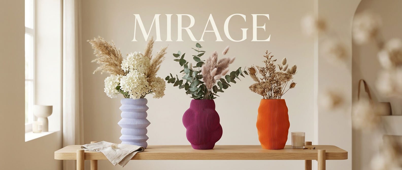 Wierzymy, że przedmioty w domu powinny nie tylko zdobić, ale też wyrażać charakter przestrzeni. Wazony Mirage to rzeźbiarskie formy inspirowane światłem, ruchem i naturą — tworzone tak, by przyciągały spojrzenie nawet wtedy, gdy stoją puste. Każdy z nich jest małą kompozycją, która buduje nastrój wnętrza i nadaje mu indywidualny rytm. To dekoracje, które żyją razem z przestrzenią i zmieniają się wraz z nią.